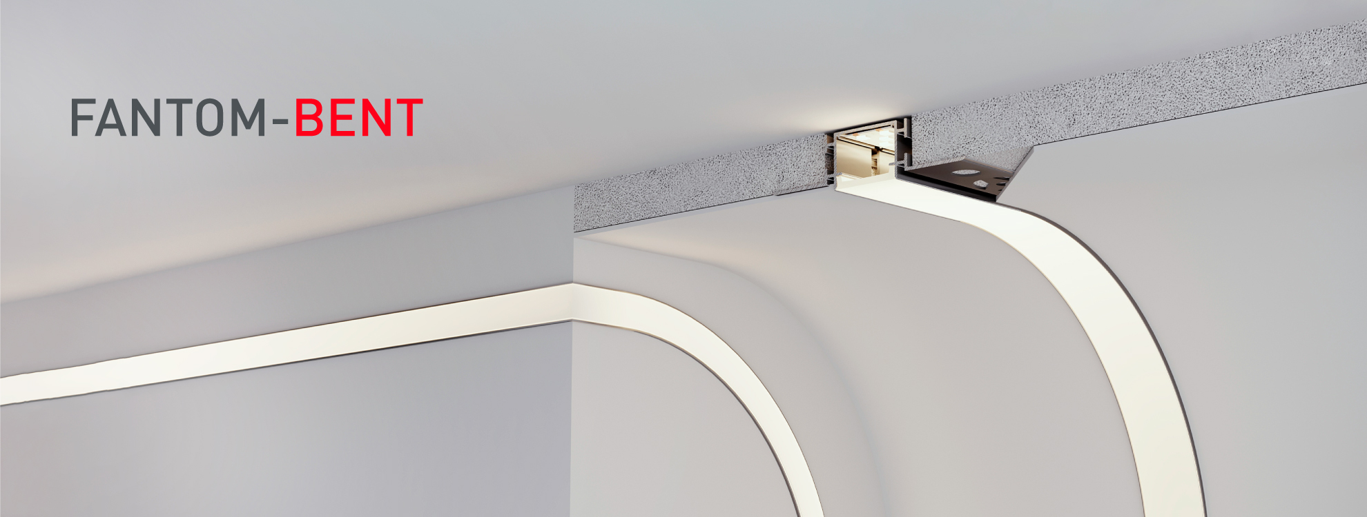 Гибкие алюминиевые профили FANTOM BENT со скрытым фланцем предназначены для создания встроенных линий света в конструкциях из ГКЛ.