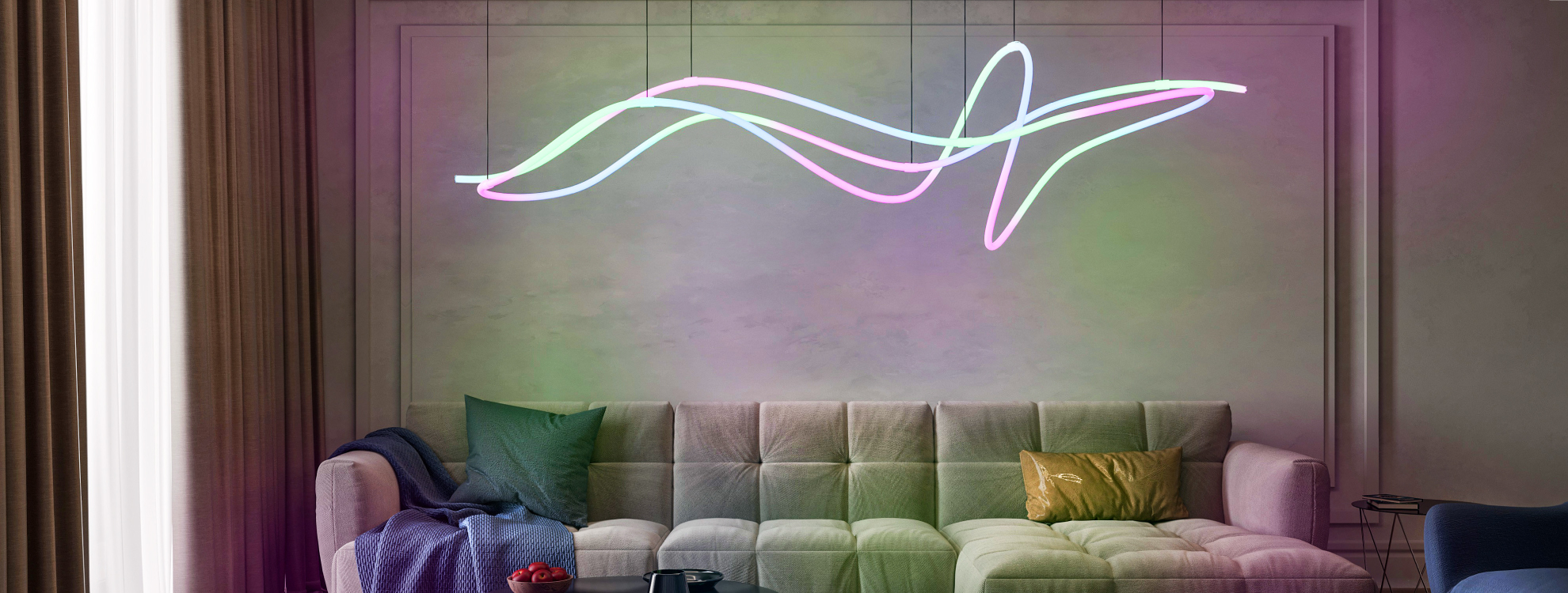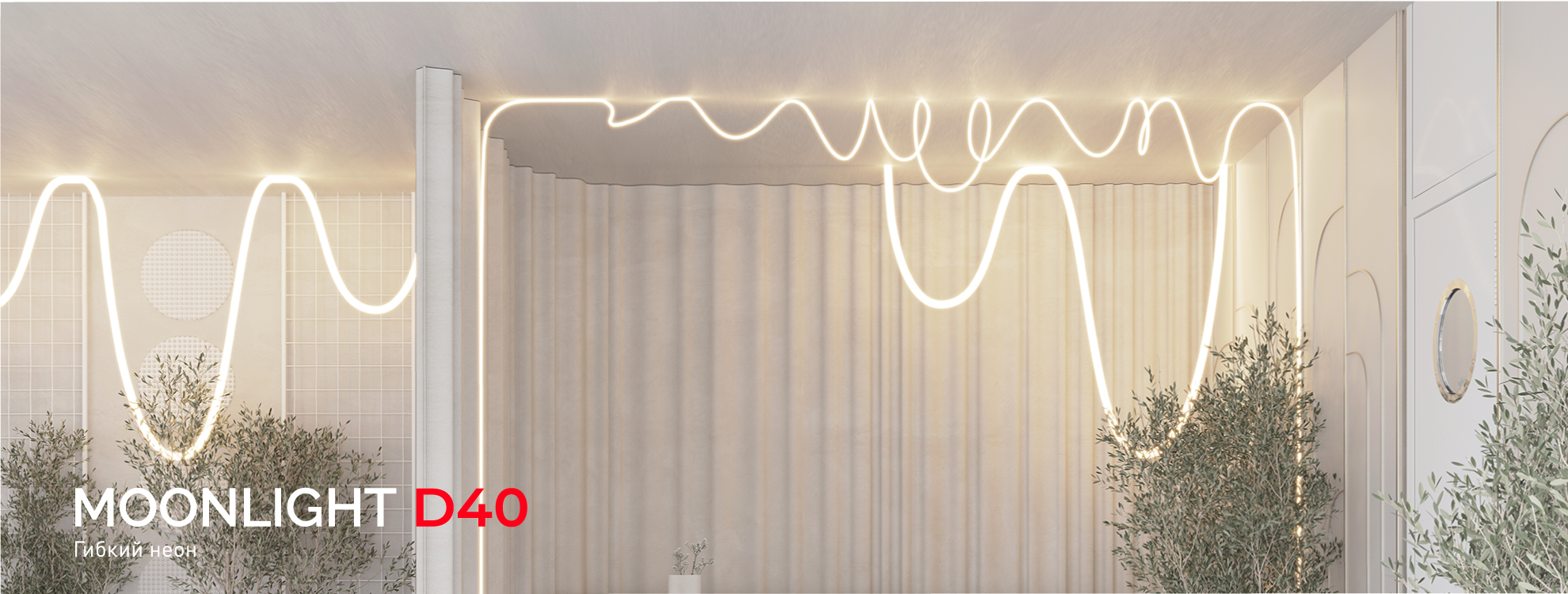 Гибкий неон MOONLIGHT с наибольшим диаметром в серии — 40 мм — обладает равномерным свечением, направленным на 360°. Неон подойдет для создания локального и основного освещения, а также оригинальных арт-объектов. 3D-инсталляции на основе круглого гибкого неона гармонично впишутся в гостиные, кухни, детские комнаты и коммерческие пространства.