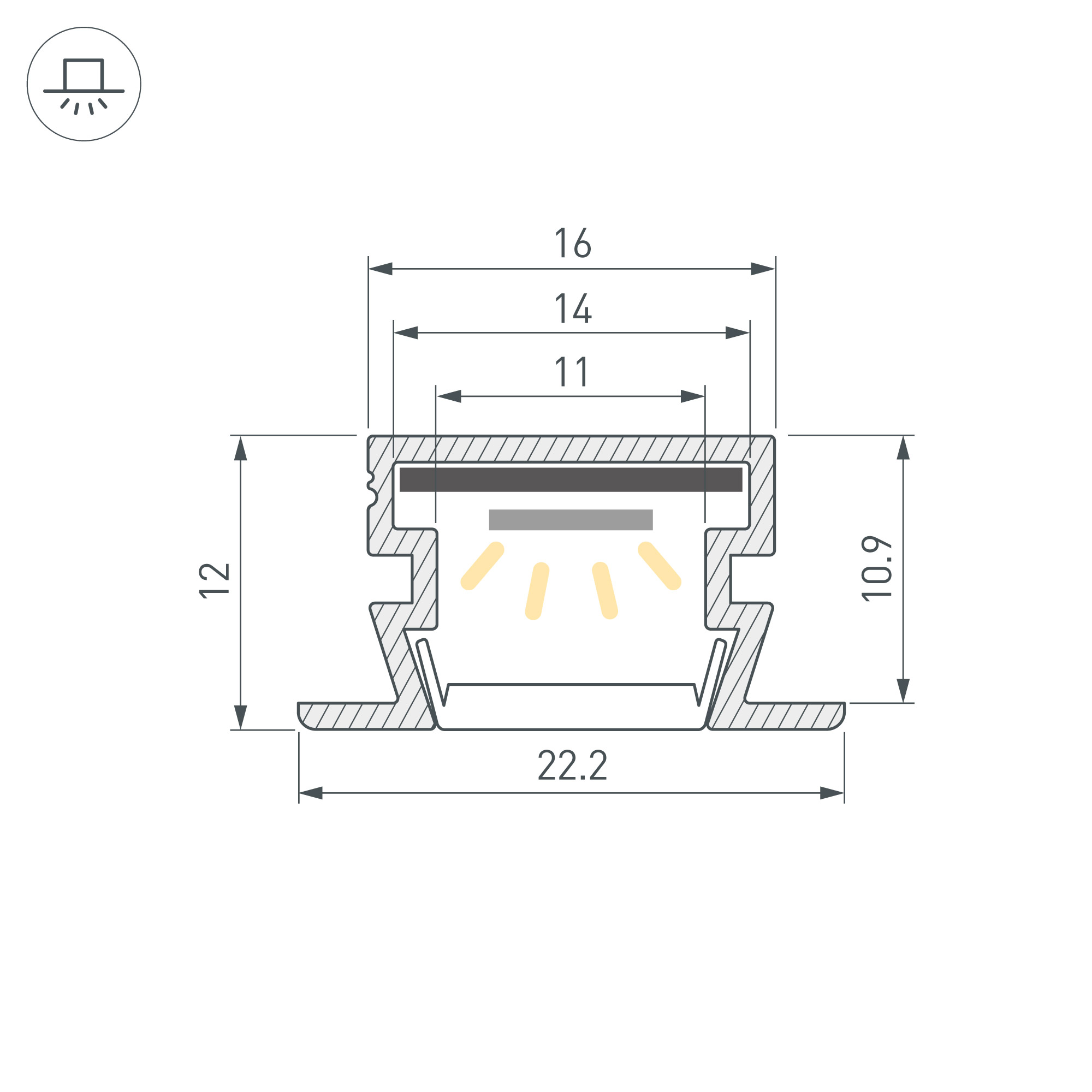 Встраиваемый профиль черного цвета с накладным фланцем из анодированного алюминия для контурной подсветки. Габаритные размеры профиля составляют 2000 мм в длину, 22,2 мм в ширину и 12 мм в высоту. Площадка для установки светодиодных лент позволяет использовать ленту шириной до 14 мм и мощностью до 16,4 Вт/м. Это обеспечивает гибкость в выборе светодиодных лент и создает потрясающие световые решения. Экраны, заглушки и другие аксессуары не включены в комплект и приобретаются отдельно. Цена указана за 1 метр профиля. Отличное решение для создания современных световых проектов.