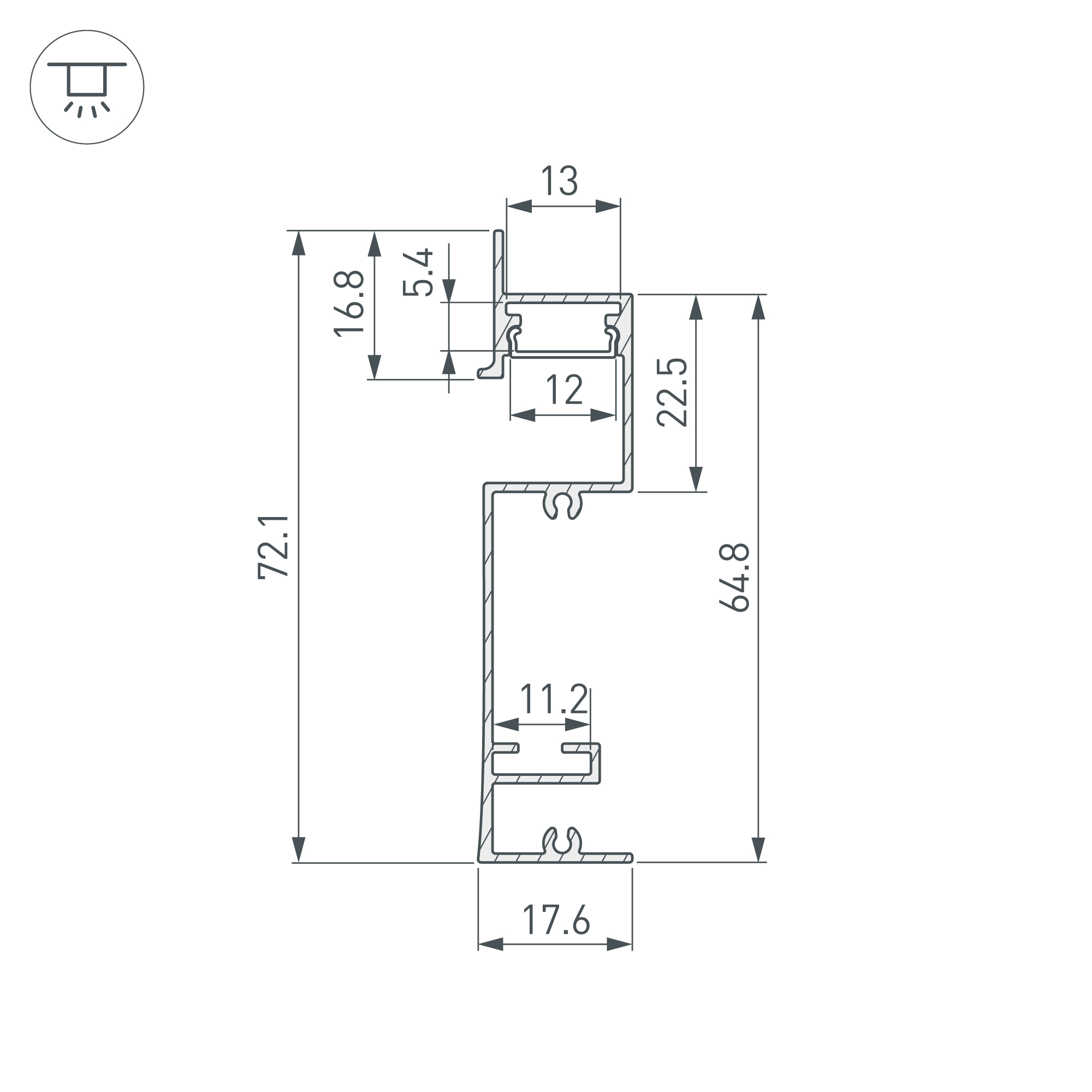 Встраиваемый алюминиевый профиль-плинтус с накладным фланцем черного цвета для создания эффекта парящей стены. Габаритные размеры профиля составляют 2000 мм в длину, 17,6 мм в ширину и 72,1 мм в высоту. Площадка для установки светодиодных лент позволяет использовать ленту шириной до 12 мм и мощностью до 32 Вт/м. Это обеспечивает гибкость в выборе светодиодных лент и создает потрясающие световые решения. Экран, заглушки и другие аксессуары не включены в комплект и приобретаются отдельно. Цена указана за 1 метр профиля. Отличное решение для создания современных световых проектов.