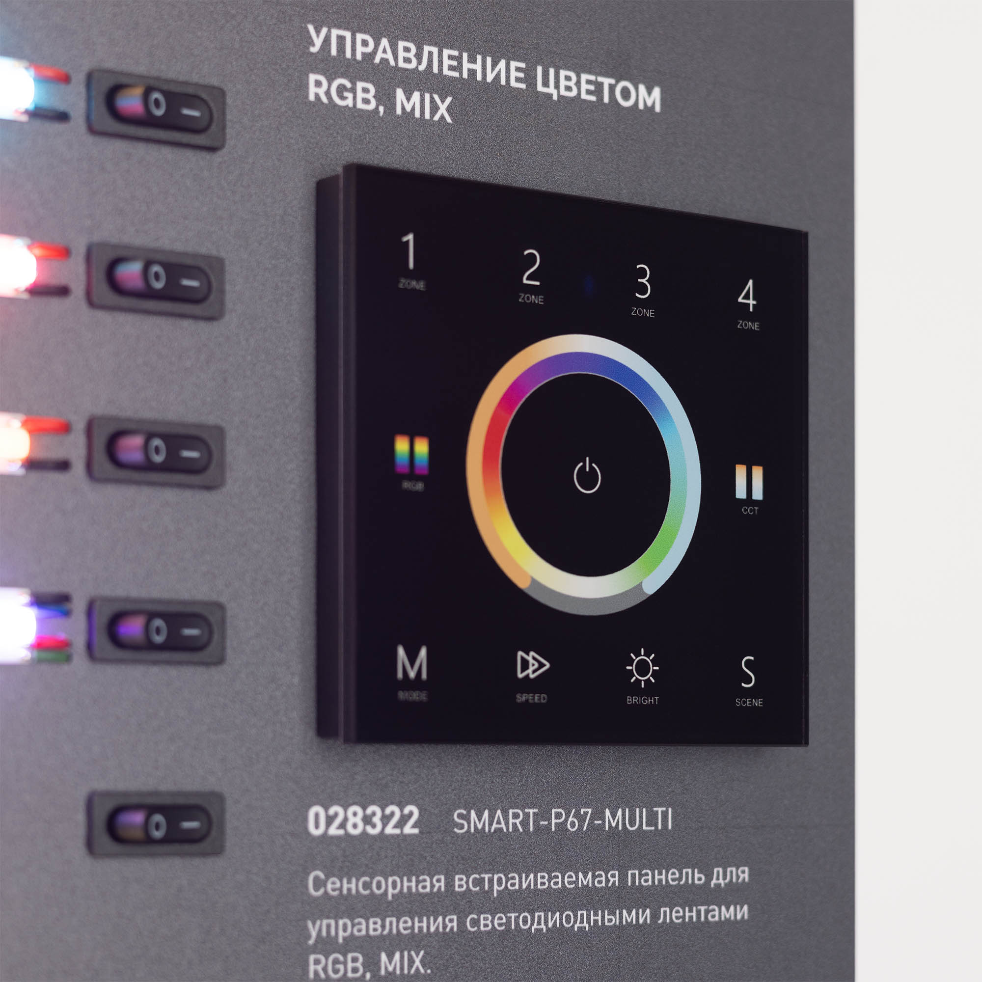 На стенде представлены ленты для создания основного и декоративного освещения: с высокой плотностью светодиодов, СОВ (без видимых светодиодов), ленты бокового свечения.