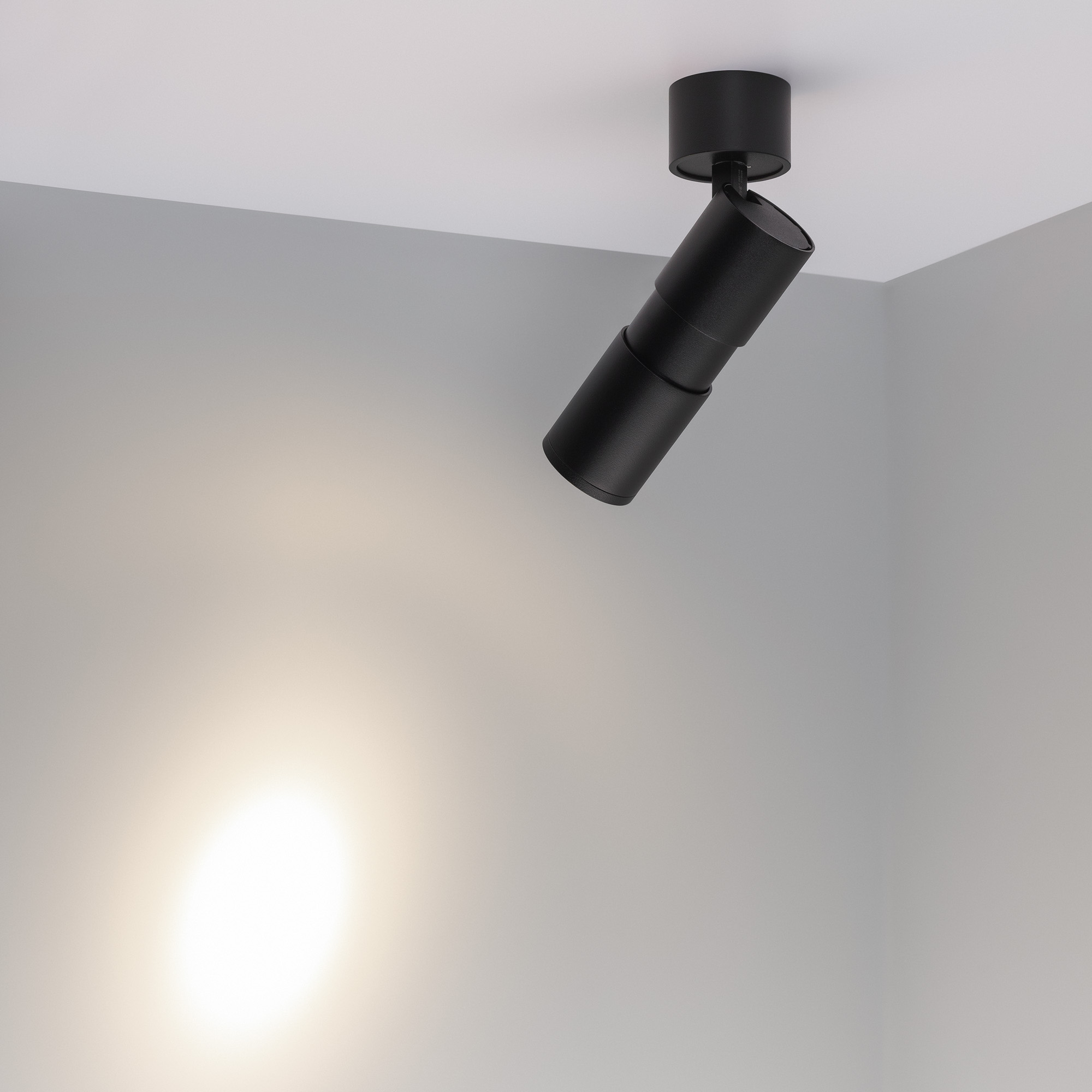 Накладной откидной поворотный светильник, 12Вт. Цвет свечения ДНЕВНОЙ 4000K, световой поток 720 лм, 60 лм/Вт, регулируемый угол 8-80°, CRI>90. Корпус круглый, металл, цвет черный, IP20. Размеры DxHxL Ø55x132~163,5 мм. Размер чаши Ø60,7x33,5 мм. Входное напряжение AC220-240V, мощность 12Вт. Драйвер встроенный (24-40V, 300 мА). Пульсация <1%.