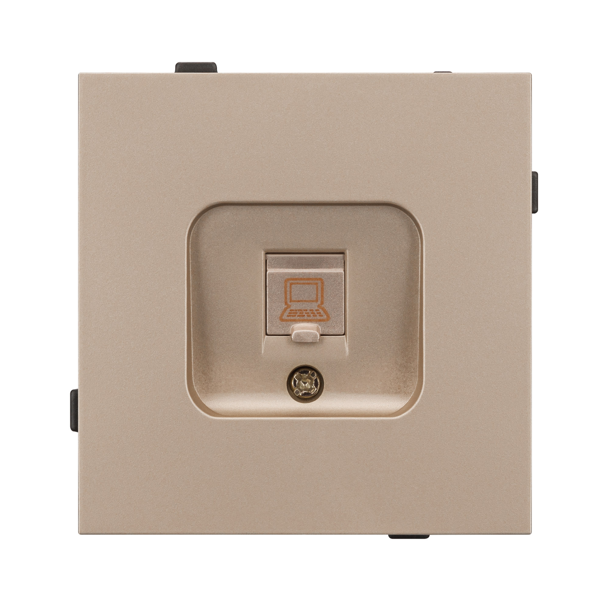 Механизм компьютерной розетки на 1 пост 6-й категории. Цвет - золотой. Без фронтальной рамки. Уровень пылевлагозащиты IP20. Розетка устанавливается в стандартный подрозетник круглого сечения диаметром 60мм. Габаритные размеры: длина 71 мм, ширина 71 мм, высота 42 мм. Гарантийный срок 10 лет.