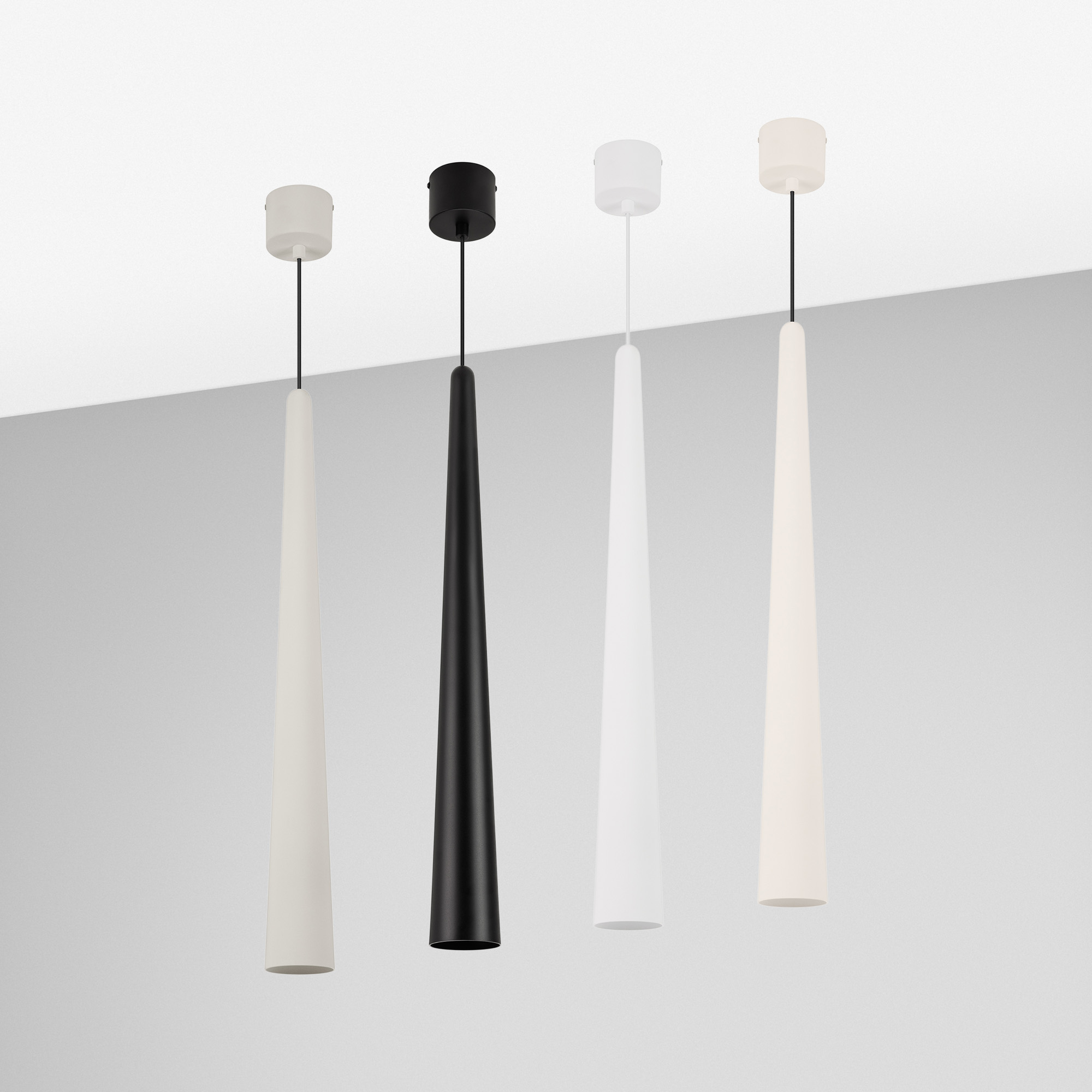 Подвесной светильник. Мощность 5 Вт, св. поток 400 лм, 70 лм/Вт, теплый 3000K, CRI>92, угол 36°, напряжение питания 230 В. Кремовый конусообразный вытянутый корпус из алюминия, линза из PMMA, степень защиты IP20. Размер: диаметр 76 мм, высота 670 мм. Монтаж подвесной, длина подвеса 2000 мм, регулируемая. В комплекте 2 вида чаш. Габариты встраиваемой чаши: Ø 80x41 мм. Габариты накладной чаши Ø80x60 мм. Драйвер 2,8-12В, 500 мА, пульсация <1%.