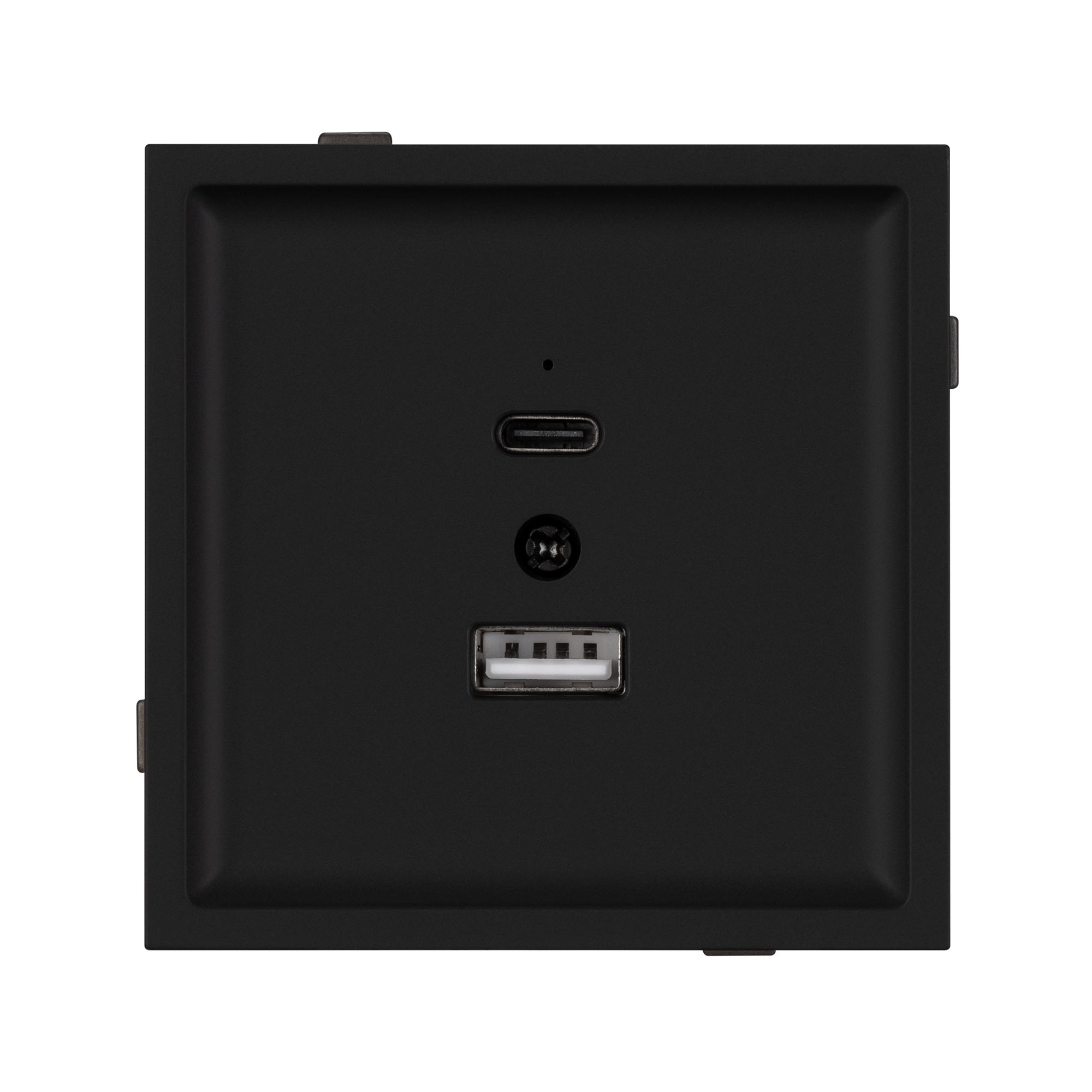 Механизм USB розетки на 2 порта Type A + Type C . Цвет - черный, с Soft-Touch покрытием. Без фронтальной рамки. Выходная мощность для USB Type C порта не превышает 20W. Уровень пылевлагозащиты IP20. Устанавливается в стандартный подрозетник круглого сечения диаметром 60мм. Габаритные размеры: длина 71 мм, ширина 71 мм, высота 42 мм. Гарантийный срок 10 лет.