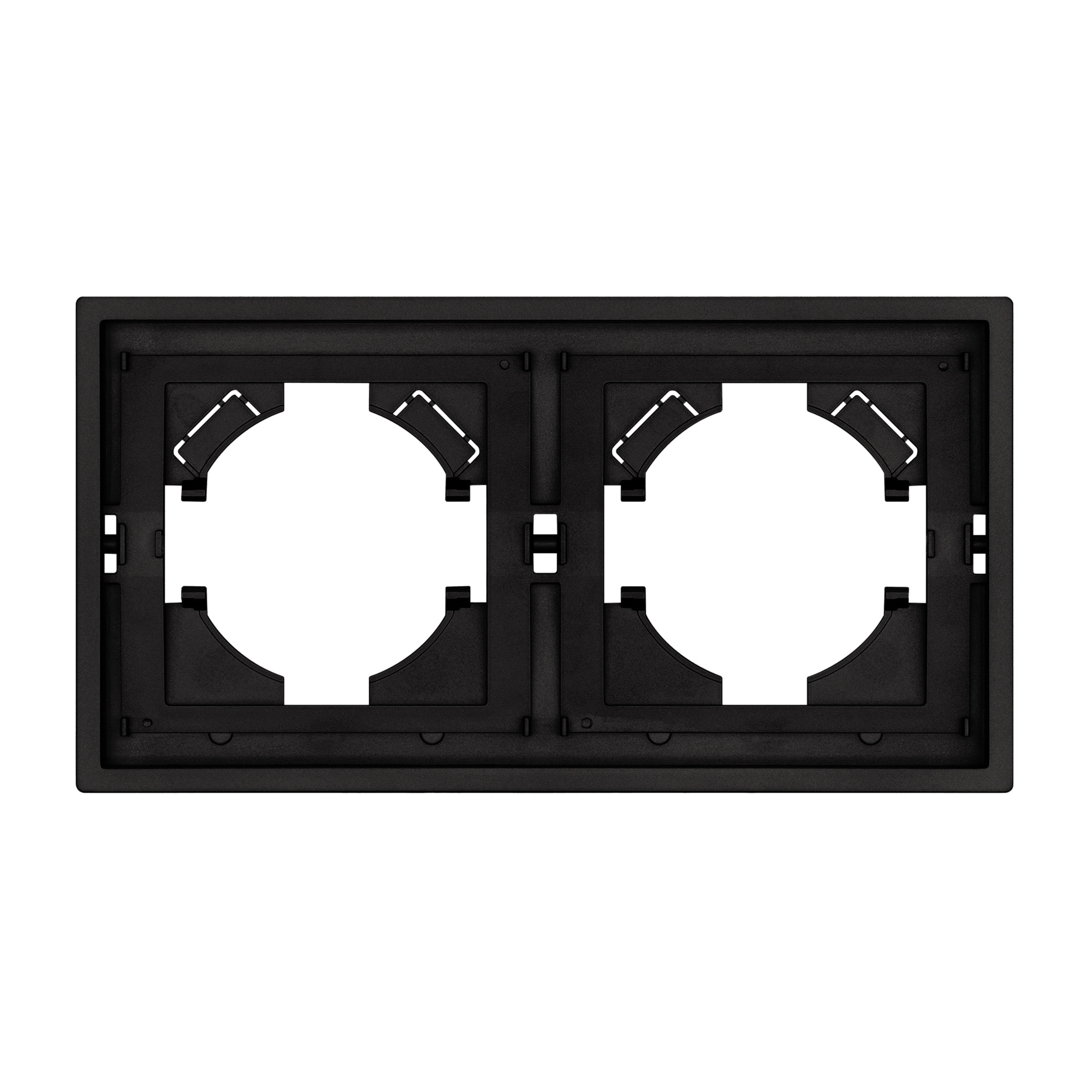 Рамка пластиковая на 2 поста, под встраиваемый механизм. Цвет - черный, с Soft-Touch покрытием. Среднего уровня герметичности IP20. Ориентация монтажа горизонтальная. Габаритные размеры: длина 150 мм, ширина 80 мм, высота 9 мм. Гарантийный срок 12 мес.