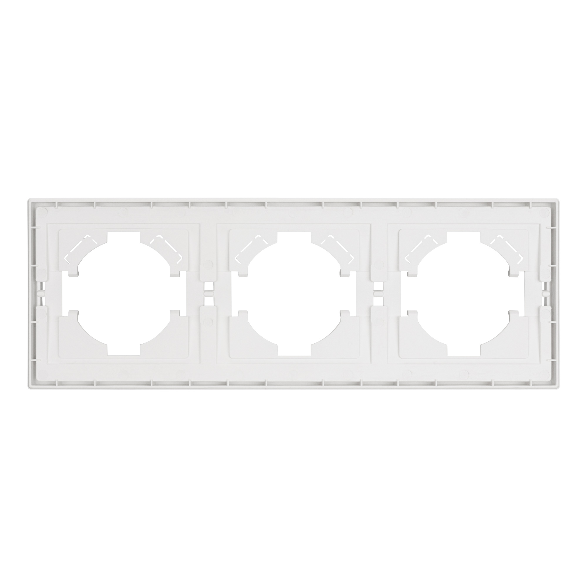 Рамка пластиковая на 3 поста, под встраиваемый механизм. Цвет - белый, с Soft-Touch покрытием. Среднего уровня герметичности IP20. Ориентация монтажа горизонтальная. Габаритные размеры: длина 221 мм, ширина 80 мм, высота 9 мм. Гарантийный срок 12 мес.