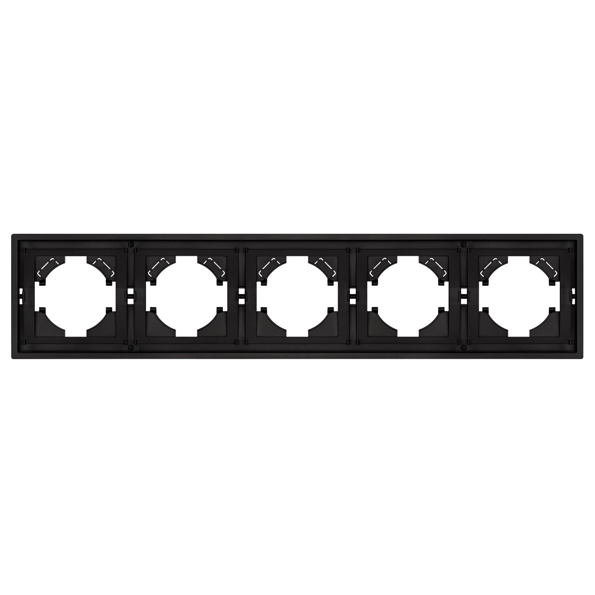 Рамка пластиковая на 5 постов, под встраиваемый механизм. Цвет - черный, с Soft-Touch покрытием. Среднего уровня герметичности IP20. Ориентация монтажа горизонтальная. Габаритные размеры: длина 364 мм, ширина 80 мм, высота 9 мм. Гарантийный срок 12 мес.