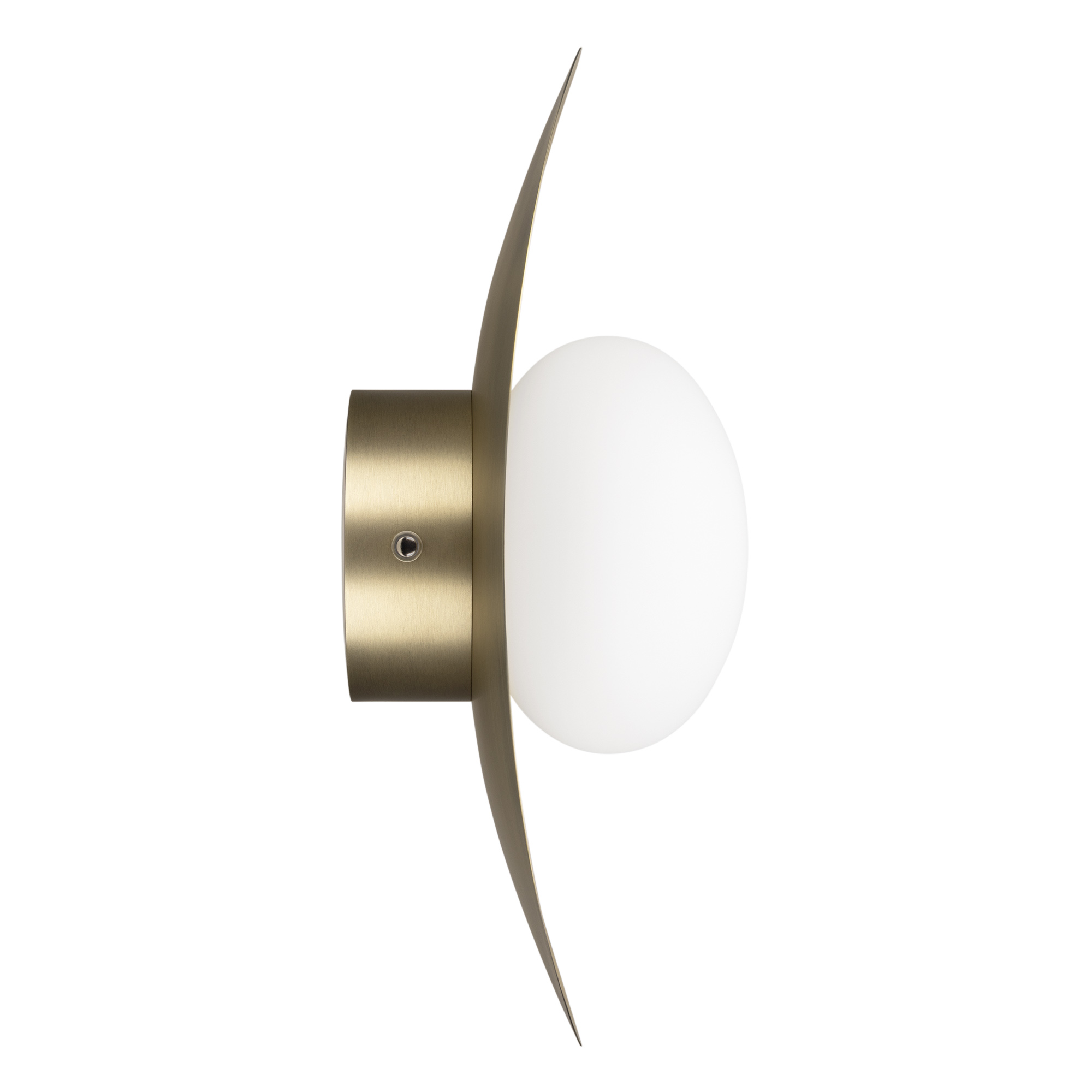 Декоративный настенный светильник. Мощность 6 Вт, св. поток 325-340 лм, 50-52 лм/Вт, теплый 2700 K,теплый 3200К, дневной 4000 K (переключаются), CRI>92, угол 150°, напряжение питания 230 В. Фигурный корпус из алюминия, гальванизированного в цвет бронза, экран из матового стекла, степень защиты IP20. Размер: габариты световой части: Ø145x70 мм, габариты чаши: Ø110 x 42 мм. Монтаж накладной. Встроенный блок питания: 12В DC, 0,75А, пульсация <2%. Встроенный диммер TOUCH-DIM.