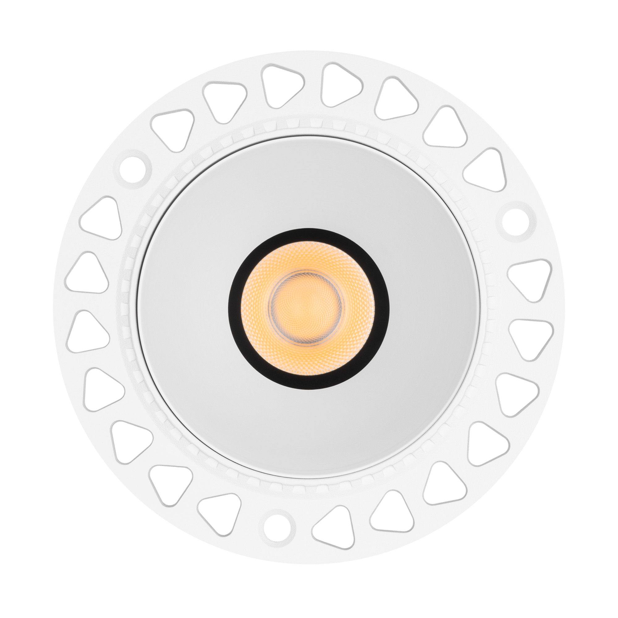 Встраиваемый светильник даунлайт. Мощность 12 Вт, св. поток 905 лм, 75 лм/Вт, теплый 3000 K, CRI>92, угол 24°, напряжение питания 230 В. Белый круглый корпус из алюминия, белый матовый отражатель, степень защиты IP20 . Размер: диаметр 105 мм, высота 87 мм. Монтаж встраиваемый, установочное отверстие: диаметр 75 мм. Драйвер 27-42 В, 280 мА, пульсация <0,5%.
