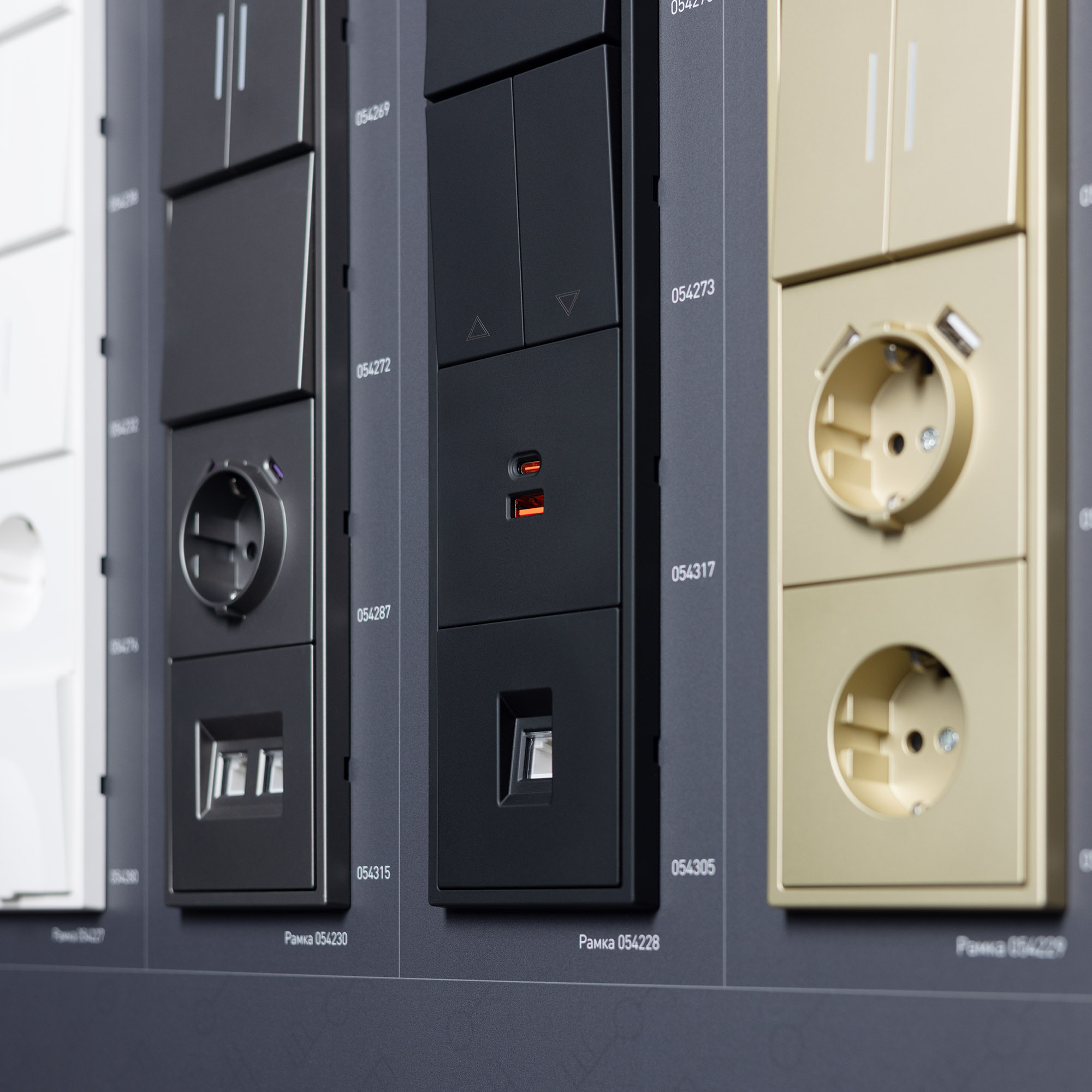 На стенде представлены выключатели и розетки серии Nobe и Omali