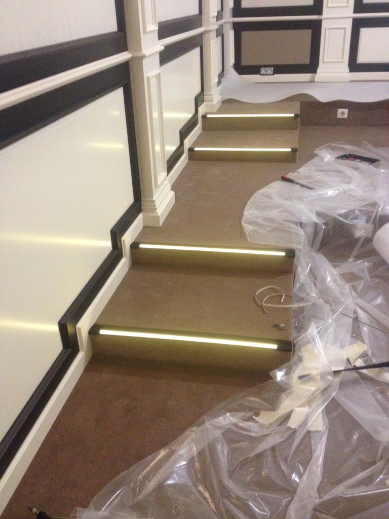 Светодиодная подсветка лестниц, выполняет сразу две функции - с одной стороны является декоративным элементом интерьера, с другой стороны обеспечивает безопасность передвижения в темное время. Вариантов расположения подсветки очень много. Это размещение на поверхности ступени светодиодной ленты в специальном алюминиевом профиле, расположение светодиодной ленты под ступенями, монтаж вдоль всей лестницы в стены или на перила. Для удобства и экономии электроэнергии можно также применить различные датчики управления освещением - микроволновые, инфракрасные и фотореле. В данном проекте подсветка лестниц выполнена с применением светодиодного оборудования торговой марки arlight®.