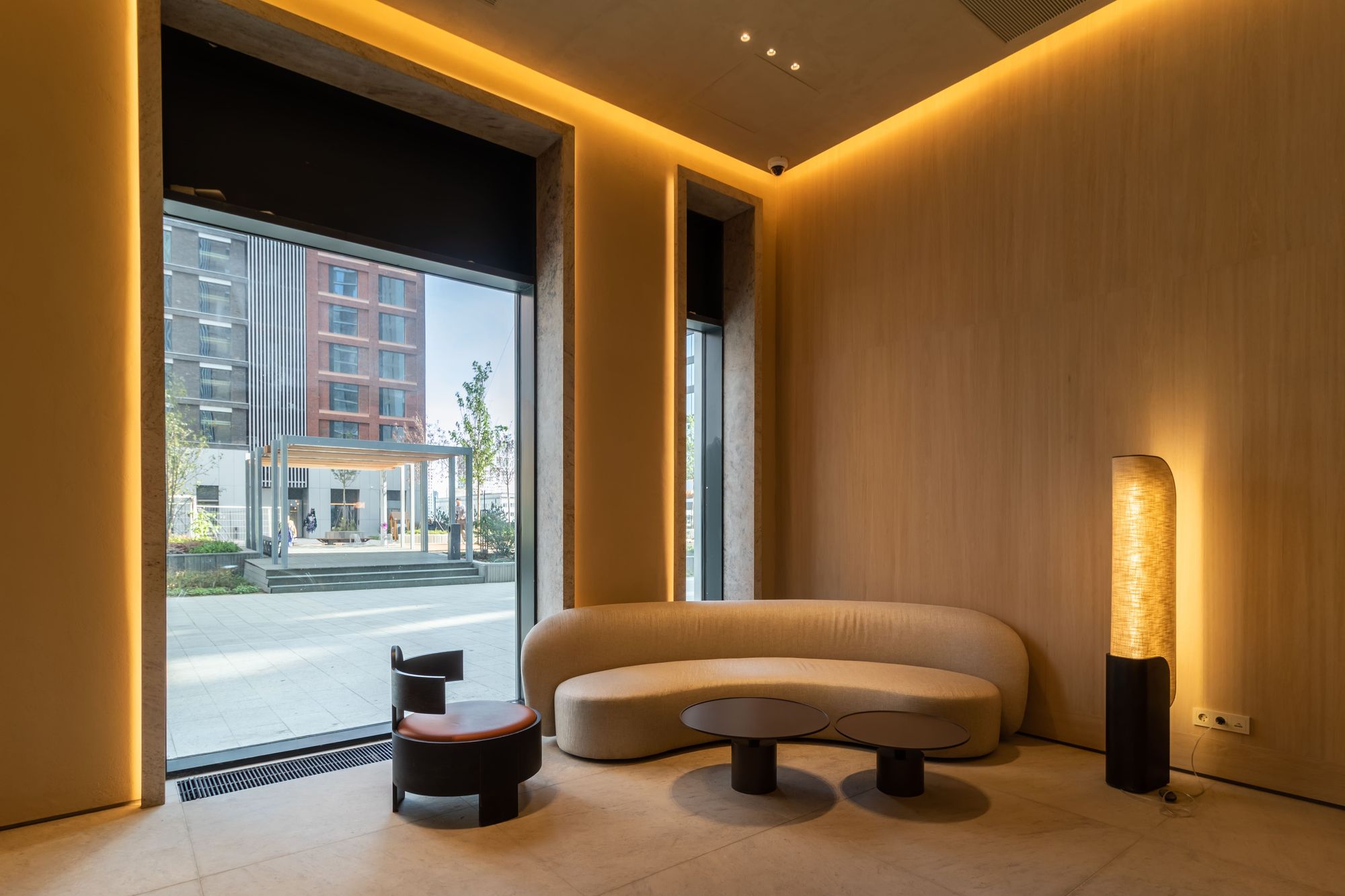 Освещение лобби функционирует по природным часам. В восьми корпусах жилого комплекса специалисты Arlight применили различные световые сценарии на основе системы DALI. С восходом солнца встроенные в потолок светильники включаются на 100%, а закарнизная подсветка — на 30%. После заката, наоборот, яркость закарнизной подсветки возрастает до 100%, а яркость потолочных светильников снижается до 30%. Также возможно управление освещением вручную с помощью панелей DALI.